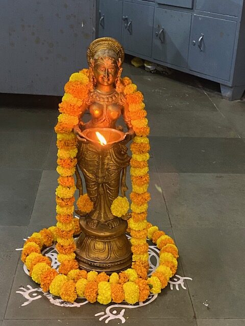 In Mumbai temples and homes are lit with rows of lamps and ladies attired in colourful dresses go to temples and pray to Lord Shiva and Lord Karthikeya to ward off evil forces and bring happiness to the family. On this day people light oil lamps usually made of clay. The oil lamps are considered auspicious symbols in Hinduism and are believed to ward off evil forces, and usher in prosperity and joy.